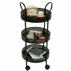 Best reviews of π Mind Reader 3-Tier Metal Rolling Organizer With Wooden Baskets, Black π