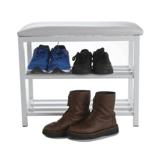 Mind Reader 3-Tier Shoe Bench w/ Storage Shelf and Cushion