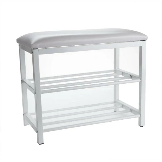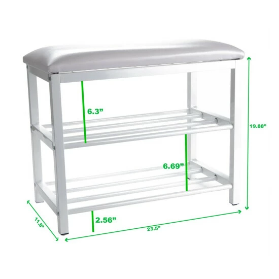 The Mind Reader Shoe Bench is sure to catch eyes of your guest the moment they walk into your home. What better way to greet someone than with a luxurious shoe bench that they can sit down on and take their shoes off while sitting. A modern and contemporary touch to any home dΓ©cor and/or furniture. Created with attention to detail, the Mind Reader Shoe Bench is made of strong metal and aluminum pipes for storing your shoes, heels and flats securely.