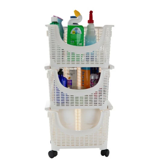 Organize just about everything, anywhere with this 3-Tier Stackable Rolling Storage Bins Set from Mind Reader. The bottom bin has wheels and the entire set is lightweight and easily portable. It’s perfect for the office, kitchen, kids’ room or wherever else you need space-saving storage.