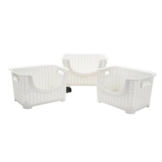 - This set includes 3 stackable storage bins