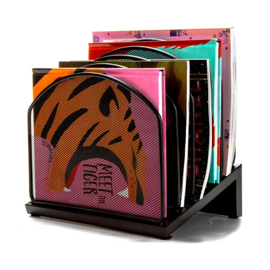- Maximize Space – Maximize your storage in a minimal space. Five 1.5″ wide vertical sections hold file folders, cookbooks, homework, journals, and binders without tipping over.