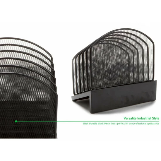 Mind Reader’s Mesh Incline 5-Section Desktop Organizer keeps essential files and documents organized and within easy reach and can be organized in order of importance. The sturdy, thick, commercial-grade mesh steel provides stability while the powder coat finish helps reduce chipping and scratching for years of use.
