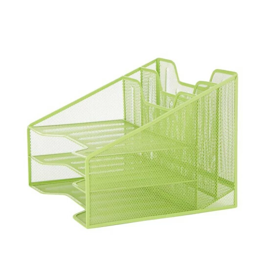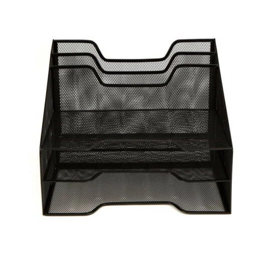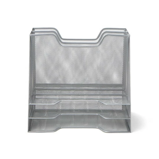 This Mind Reader mesh desk tray features five compartments to organize your important documents and other office supplies such as pens, pencils, paper clips, post-its, paperwork and more.It has a steel look with a classy and modern design that will add beauty to your desk, while giving you more space through organization.This unit features bottom rubber grippers to keep it in place and is built to last with attention to detail and superior materials.