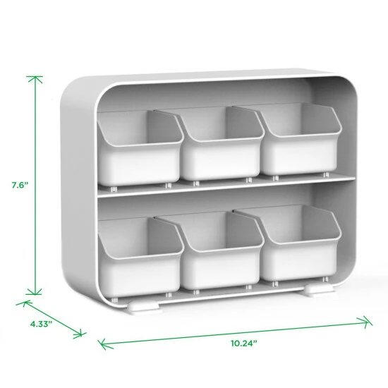 This holder features 6 generously-sized sections provide plenty of space to store, organize and separate tea bags, creamers, sugar, salt, pepper packets, sweeteners, coffee pods, filters, cups, stirring sticks, instant coffee or tea packets, liquid vitamins, water flavorings and other beverage needs. The open design construction allows for the user to see exactly which flavor they are going for without having to open a lid or chest before finding out where they put their favorite tea.
