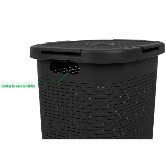 This conveniently large hamper can hold multiple loads of laundry at one time, helping to save space, and allowing you to enjoy all the storage you need at hand for those heavy-duty laundry days.Constructed from sturdy plastic wicker, this hamper withstands the weight of sorting your dirty laundry without bending or buckling. The ventilated wicker plastic allows air to freely pass through your laundry, and the integrated carry handles make relocating a full hamper easier than ever.
