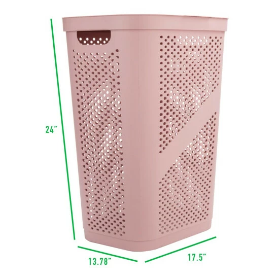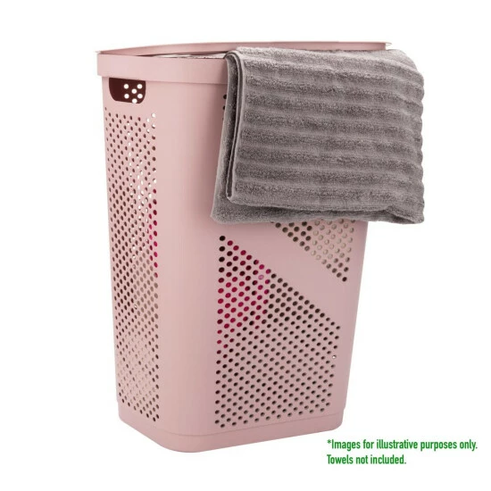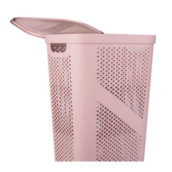 Mind Reader 60L Perforated Pink Plastic Hamper with Lid