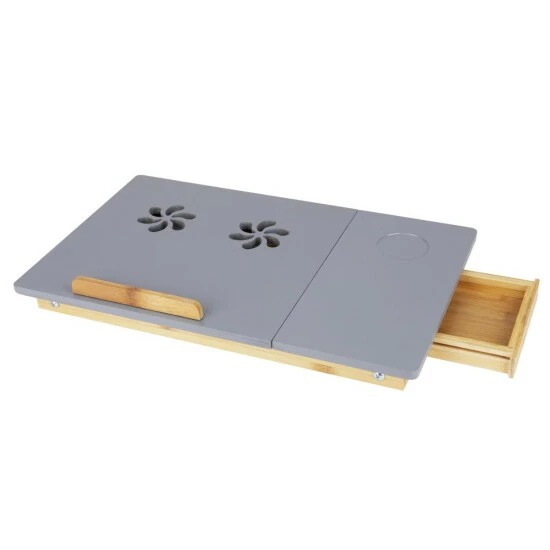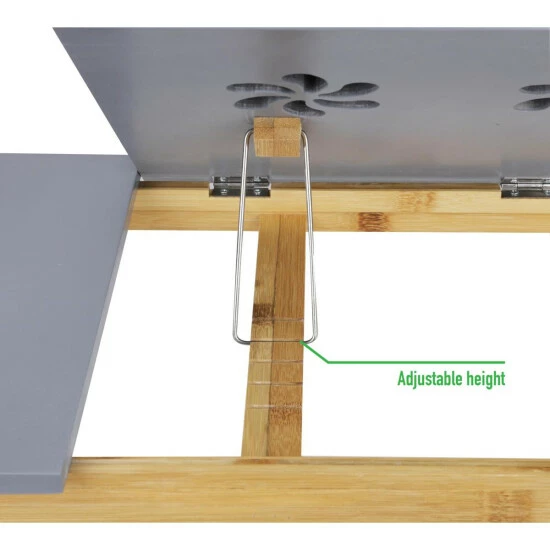 Work, read, or watch your favorite TV shows from the comfort of your bed or sofa with the Mind Reader laptop coolpad lap desk. This finely crafted wooden laptop table features a smooth, coated tabletop and natural finish legs and details designed ready to hold your laptop, tablet, book, or meal in place. When you need seamless productivity or uninterrupted binge-watching, the flip-up, adjustable desktop features different tilting options to provide excellent viewing angles while keeping your neck free from strain.This laptop stand features a cut-out design at top to promote airflow and help prevent your laptop from overheating.