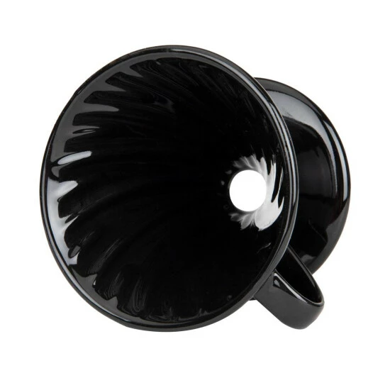This unique 1-4 cup brewer is tried, true, and guaranteed to make a flavorful cup of joe.The Mind Reader Ceramic Pour-Over Coffee Maker doesnβt just have to be used in your home. Its small size and portable design can be brought into the office break room or even used as a camping coffee maker. Just add quality coffee grinds, hot water, and you will be drinking that dark brew in no time. The heat-resistant ceramic maintains proper temperature, the angled spiral ridge walls ensure optimal extraction, and the large central opening can be narrowed or widened by adjusting the #2 filter to customize the speed of the brewing process.
