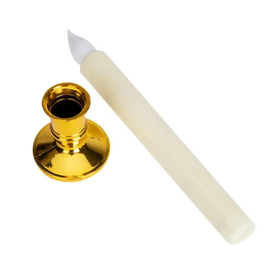 Light up the night with a set of Mind Reader Flameless Candles for your fancy dinners, black tie events, and more. Each candle in this multi-piece setcomes with its own gold candle-holder, so you can set them up and get your table looking beautiful instantly. The candles can also be used in your own candle holders at home, giving you the freedom to customize your decorations. These flameless candles feature a convenient on-off switch on the bottom, and help to avoid the hazards of real candles, like melted wax damaging tabletops or tablecloths.
